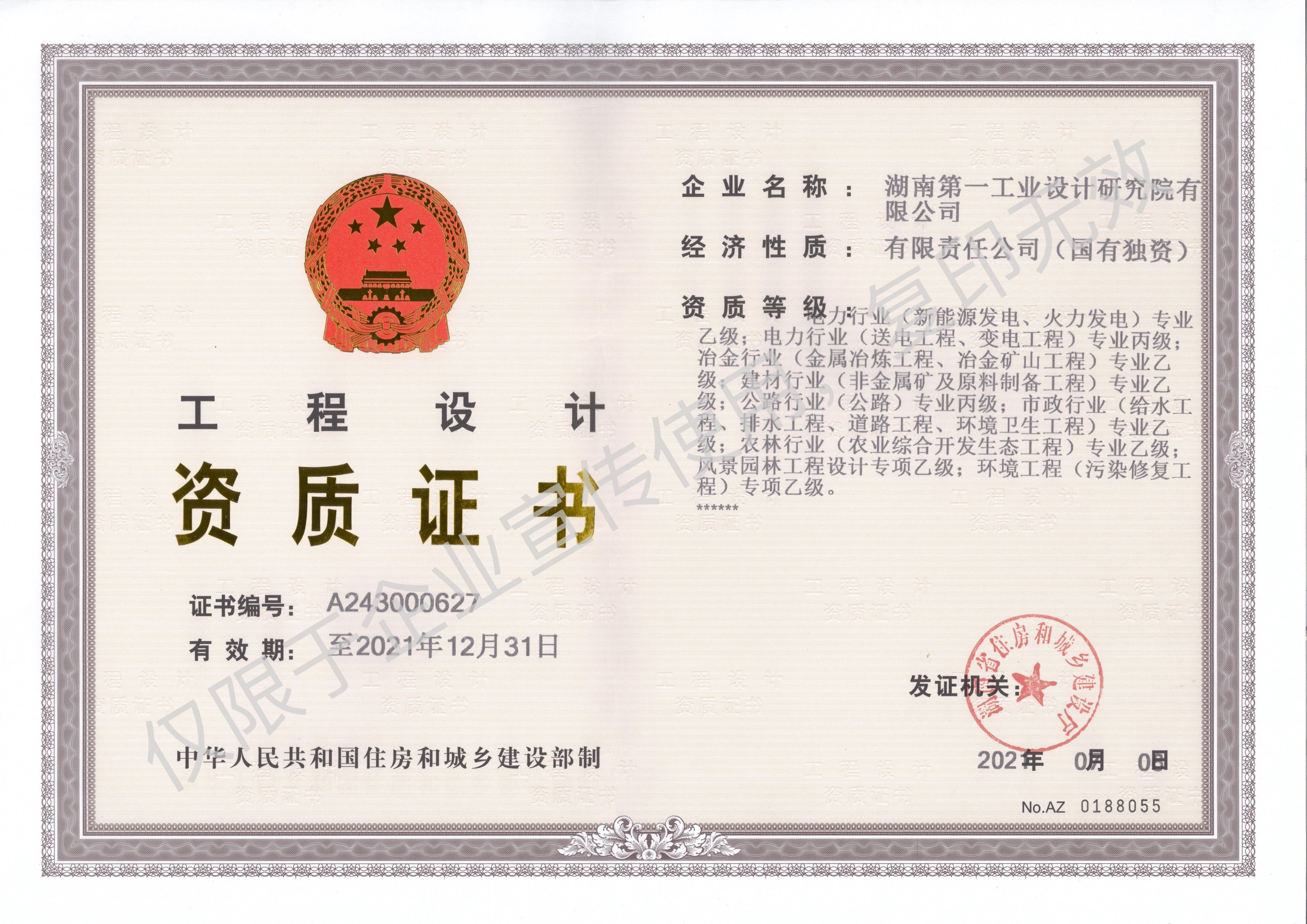 工程設(shè)計資質(zhì)證書(電力行業(yè))